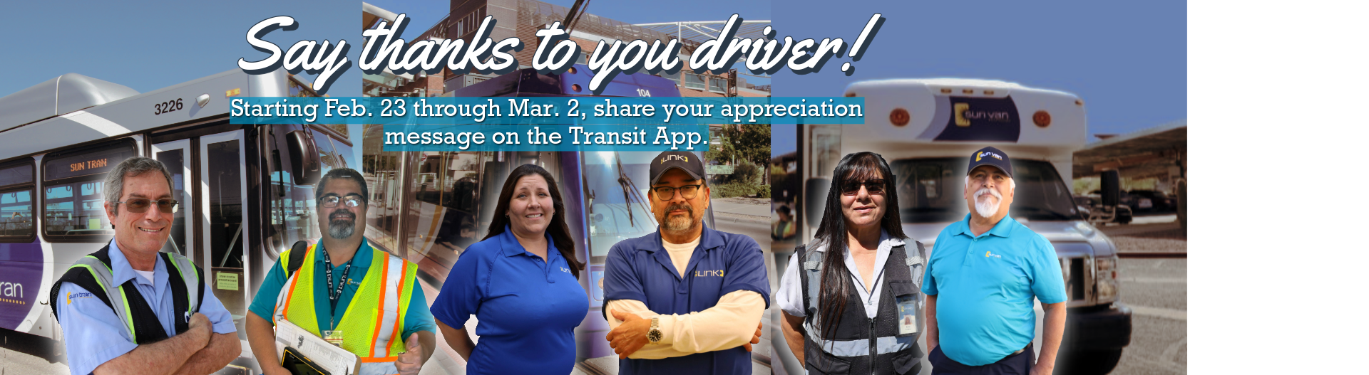 From February 23 through March 2, riders can share appreciation messages for the dedicated Sun Tran, Sun Link and Sun …