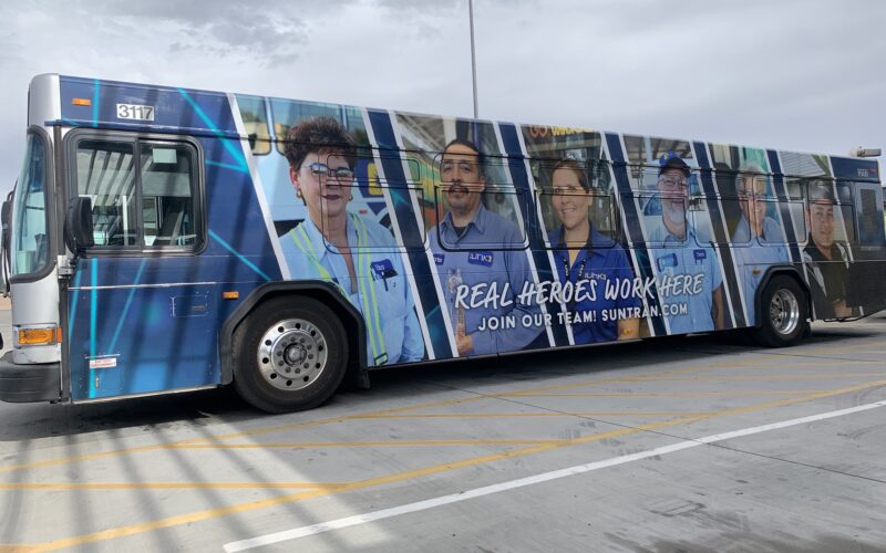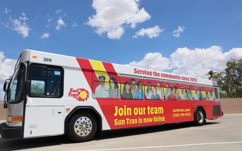 Advertise your business on a moving target! Sun Tran, Sun Link vehicles and shelters are available for you to reach your mark!