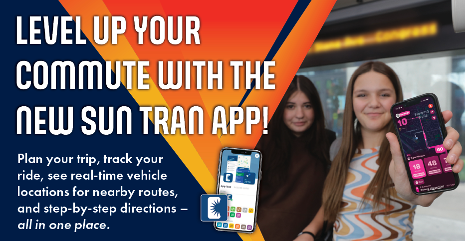 The official Sun Tran app helps riders navigate Tucson’s transit system. Whether you’re planning a trip, checking bus arrival time or staying updated on service changes, the app has everything you need in one place. To download the app on your device search ‘Transit.’